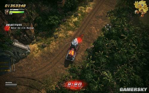 我們先去紅色箭頭方向,過程中躲避天空的炮彈,到點後攻擊敵人的重火力車,