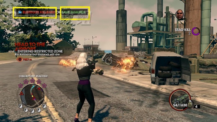 到達第一處地點,到場後要清空這片區域,這裡有很多臉譜幫成員正和STAG打得不亦樂乎