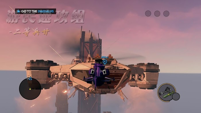 先打掉飛船兩邊的炮塔,之後降落在飛船的甲板上