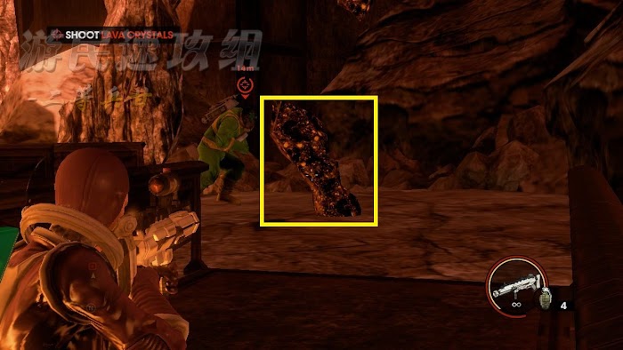臉譜幫老大一共兩種攻擊方式一種是近身攻擊、另一種是遠端投擲火山岩攻擊,趁他拿石頭的時候攻擊石頭即可造成爆炸