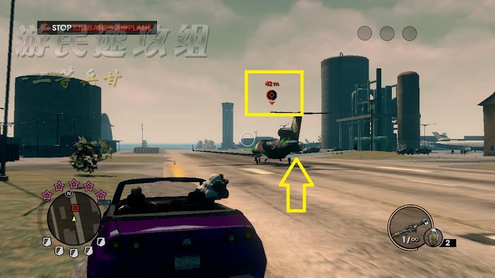 拿出火箭筒狂轟老大的專機,幾下之後飛機就會爆炸