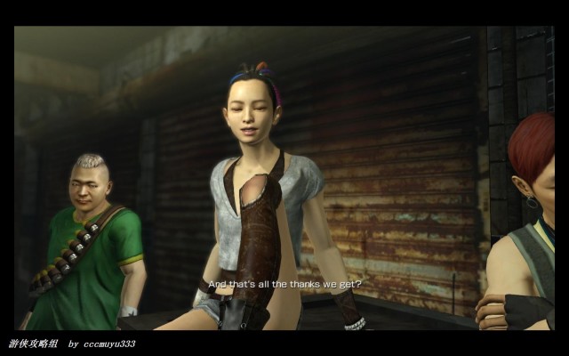 終於擺脫了敵人的追擊,來到了地面,在這里和新的隊友匯合。 這裡會有個新隊友:鋼鐵俠,太BT了,不過為了妹子還是不帶你·······