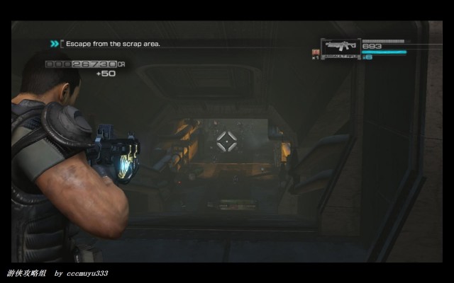 4:一段劇情之後來到主角被扔到機器人廢棄處,這裡有幾個門,需要你守住陣地讓隊友開門,和你利用門邊上的幾個氧氣罐。