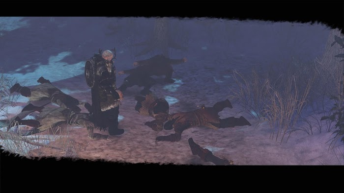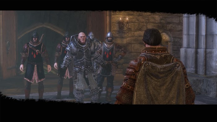 故事緊接著黑哥的時間線進行,回到黑堡的一行人,意識到黑衣眾竟然如此容易被收買,所以決定變被動為主動,出發追尋瓦拉的間諜手下。出發前可以對話觸發兩個支線任務。一個是黑老大為你升官,讓你到處找尋合適的黑衣人新兵。二是在大廳中試探並找出可能的被收買的黑衣成員。前個任務到莫爾斯鎮才能做,後一個在大廳中與幾個重要人物對話完成,並回到二樓人事哪裡給出你的結果(全清白,還是有問題,你看著辦,這裡我認為對主線沒有影響)。接著出發前往莫爾斯鎮外的森林,遇到一個被自己人欺負的黑衣兵,救下,並帶路遇到間諜的爪牙。得到資訊後殺之,繼續前進。用愛犬聞著氣味追蹤,找到一個走私販,開打搜刮。回到鎮裡,樹根旁邊有錢。進入“娛樂園”與掌櫃對話,可以得知一些收了錢的黑衣眾正在“翻雲覆雨”。好吧,我們就趁這個機會嚇嚇他們吧~他們知道不敵黑哥,所以包括開門暗號全招了……用暗號進入後門,地下地形複雜,利用愛犬多多消滅敵人,最後強攻來到門口。出來就到了森林另一邊,間諜的藏身地。這裡可以直接攻擊,也可以暗殺消耗後命令一人佔據制高點後攻擊。顯然後者更為妥當。全部搞定後,得知敵人幕後黑手是瓦拉(但我們玩家知道誰是瓦拉的老大),小派和同伴回到黑堡,黑哥和美女繼續南行。黑哥帶著美女來到西域自認為安全的地方,也是自己15年前藏密家人的地點。美女同情黑哥,要……要是黑哥不老……也許……咳咳~回到家中,一頓聯想和回憶,不過當看到母女兩人的墳墓時……黑哥再也忍不住了……再強再狠的男人此時也會流淚吧……無意中發現美女已經有了身孕(她就是羅伯特國王的情人,孩子是私生子有繼承權,所以一切都明瞭了。首相當然要保護母子,維護王權,女王因為早有預謀,而且是蘭尼斯特家族的女兒,所以肯定要讓自己的兒子傑佛瑞當權……跟劇集的故事也對上了)。愛犬警報,敵人正在逼近中……第七章告一段落,精彩紛呈,敬請期待下一章。