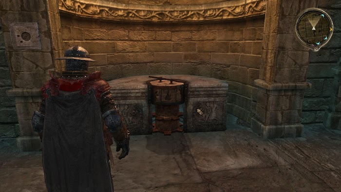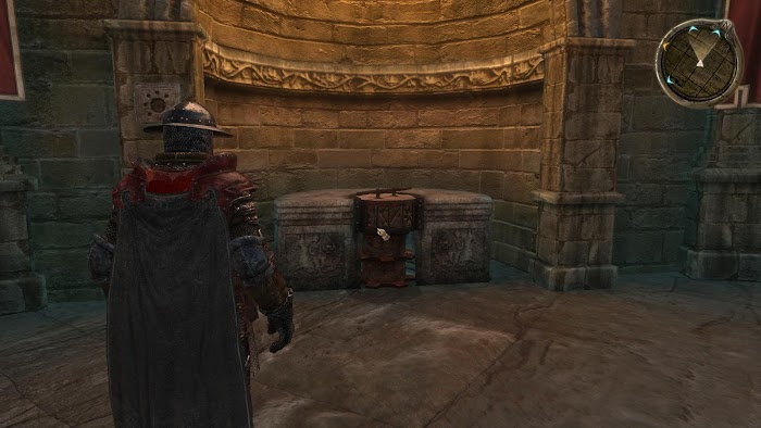 按著之前走過的路徑,殺死所有敢擋我們路的敵人,來到上圖的暗門。再往裡走就是王都攝政大廳。