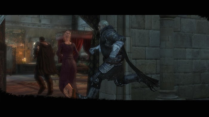 故事又接著阿哥的劇情展開,主角來到王都,目的有兩個。一個是奪回屬於自己的繼承權,阻止小妹和同父異母的小弟結婚。二是找到正被誣陷逃亡中的親二弟格紋,查明事情真相。不過王都是權力遊戲的中心,任何事情都不簡單……在城中轉轉,發現一個老頭……好心給錢打發了。沒想到幾分鐘後帶著一幫賞金獵人來抓我……目的是為了找到主角的弟弟(對,格紋已經被賞金通緝了~)。趕緊用三寸不爛之舌騙過,又在角落發現那個老頭……大家看著辦吧……我是沒殺。接著來到格紋在王都的住處,沒想到警衛們在死敵瓦拉的帶領下不光亂殺無辜,還把重要的線索,管家抓走。和周圍人對話後,與有點癡呆的二管家對話。他一聽你是主人的兄弟,立馬帶路讓你從後門進入屋裡尋找重要的信件線索。在一樓和二樓各找到一封信件,然後消滅3個找碴的笨蛋。出來繼續按線索來到“娛樂園”(你們懂得……),見到領班小柯,她馬上認出了主角,並主動邀請……咳咳~回到正題,到屋裡找到信中提到的美女。美女一問全盤托出……原來兄弟早就跑了,看來也是死胡同。出來沒想到又被警衛抓住,可惡,以美女們為要脅,阿哥只好就犯了。人生大起大落實在太刺激了……我查,剛才一身盔甲的我,現在一身精光的坐在牢裡……不過來看我們的人不是別人,就是剛才遇到的瓦裡斯(對~就是那個劇集中出現的間諜大師+太監……),個人認為這個角色很神秘,其實也很有人情味,很正直,從他和主角,還有跟死前斯達克的對話就能看出來,他一切的行為都是為了國家的運轉和利益(而且發現他很能發現並欣賞英雄)。小瓦幫助阿哥逃出牢房(當然小瓦也有自己的用意,不過不管怎樣先逃出來再說),幹掉幾個警衛,用跟愛犬一樣的方法激發R神潛能發現秘道,進入探索。來到深處救下一個小瓦手下(代號小鳥吧……嘻嘻),在他的幫助下擊敗敵人,並與小瓦回合。接著就是會見女王,這裡還是接受小瓦的建議,多假惺惺的裝作女王偉大,看過劇集的人都知道,她是個虛榮和野心過分膨脹的女人,所以對話中一定要抓住她的弱點,讓她感到需要我們主角。接著就是女王首肯,並要求主角和死敵瓦拉一起競爭完成女王的任務。呵呵~這下可有意思了,我們這個大權利下,小權利鬥爭的故事已經來到了新的高潮。