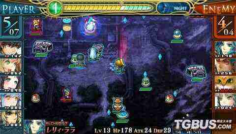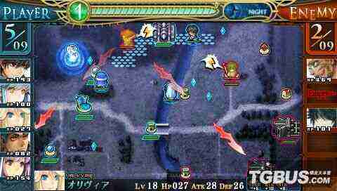 最下麵是攻擊順序和雙方角色的能力,順序取決於單位在地圖上的移動速度。