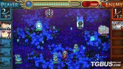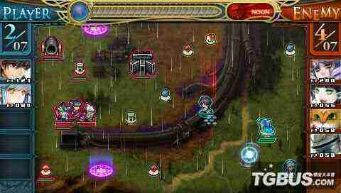 敵方BOSS的魔法陣會在戰場上隨機移動,我方撞到生命-20要注意。 那個散射的兵器很討厭,建議佔領我方據點後立刻將其攻佔。 一開始敵人數量較多而我方只能兩隻部隊深入無法展開攻擊,最好先佔住兩個據點等待後援,如果據點被破壞戰鬥就艱難了。