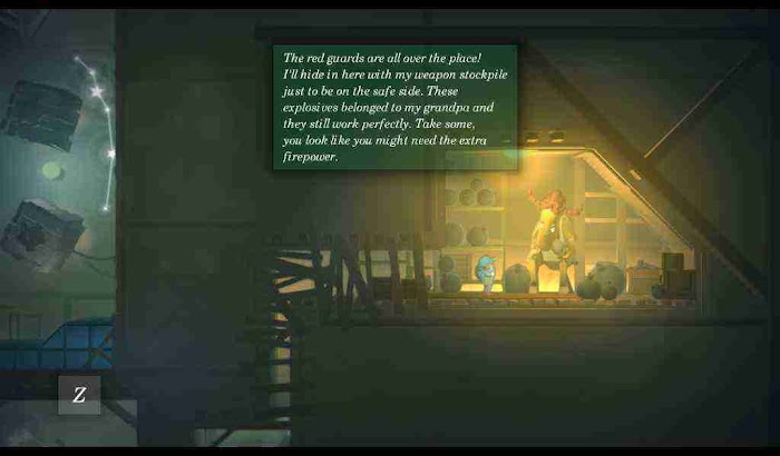 閣樓的場景很長,大部分的場景都會出現轉輪這樣的裝置。這些轉動的平台是你前進的關鍵要素。大部分利用的方法是在其上釋放光束,從而讓他在旋轉的過程中將你吹到上層 在後面的大部分場景都要利用到這個技巧