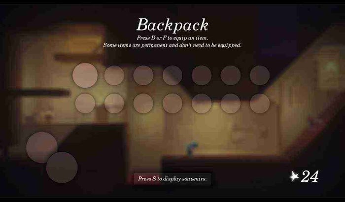 按A可以打開背包,選定物品之後按D或者F即可進行裝備。當然目前你還是沒有任何額外物品的,需要遊戲的推進才能獲取