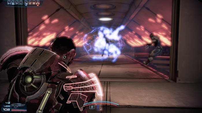 新的敵人也出現了,這種新型殺手機器人遠程會使用持續5秒的護盾(跟力場很像),中距離武器射擊,近戰會使用歐米刀,而且動作很快,不好瞄準。 建議多用組合技可以很有效率的搞定。
