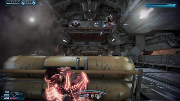 在這里奇襲敵人,都是小兵,迅速搞定。 之後要在阿瑞亞的掩護下手動操作拆除炸彈,這樣歐米伽爆破的威脅解除。