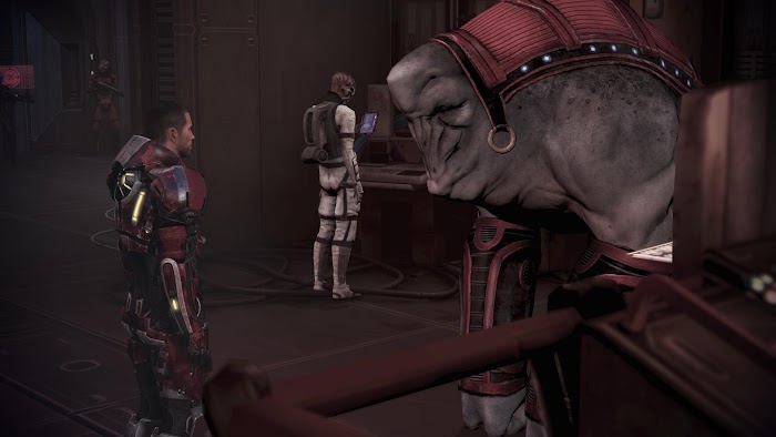 奈林給我們看新敵人的情報,這種瑟伯斯從歐米伽4門帶回來技術研製的怪物,有像殭屍一樣的傳染能力,可以將任何攻擊過的生物變成同樣的怪物。 奈林好像很怕這種東西~略顯途銳女性的可愛一面~
