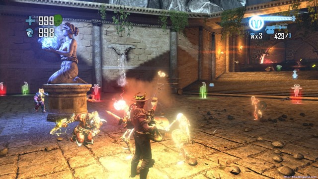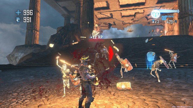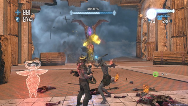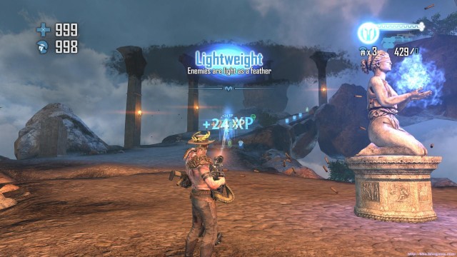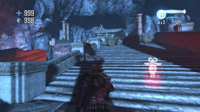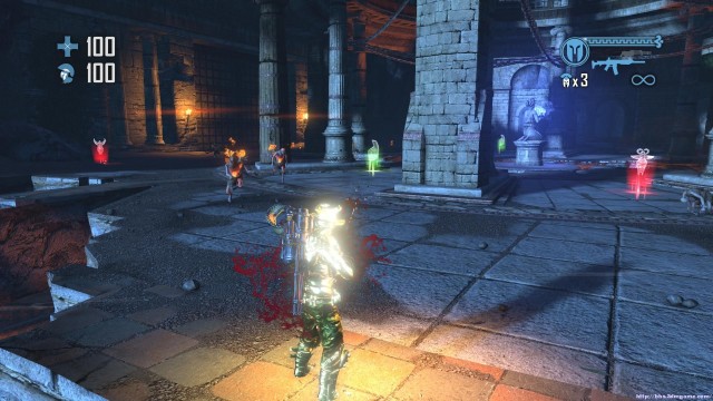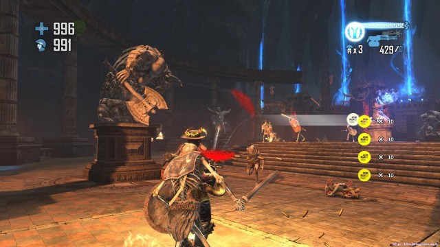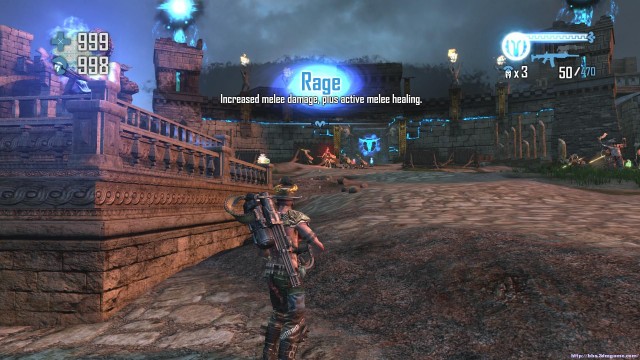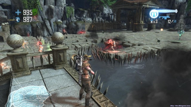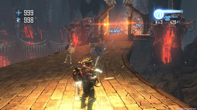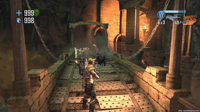 之後通過斷崖來到下一處關卡。地形開闊,神像仍然是你唯一的掩體。注意這裏的敵人的強度會大幅度的增加,但是遠端攻擊的夢魘和鳳凰卻基本沒有。玩家可以玩繞圈射擊的戰術來對付成群的骷髏和牛頭戰士